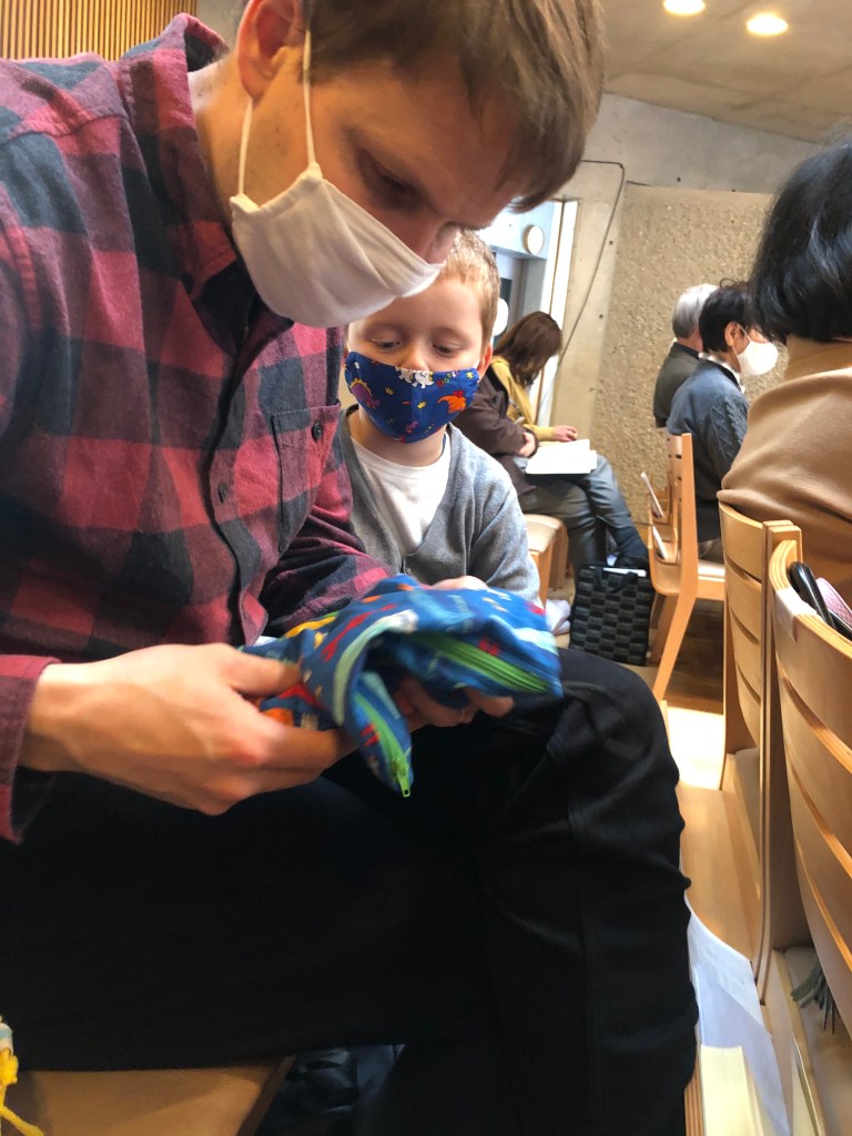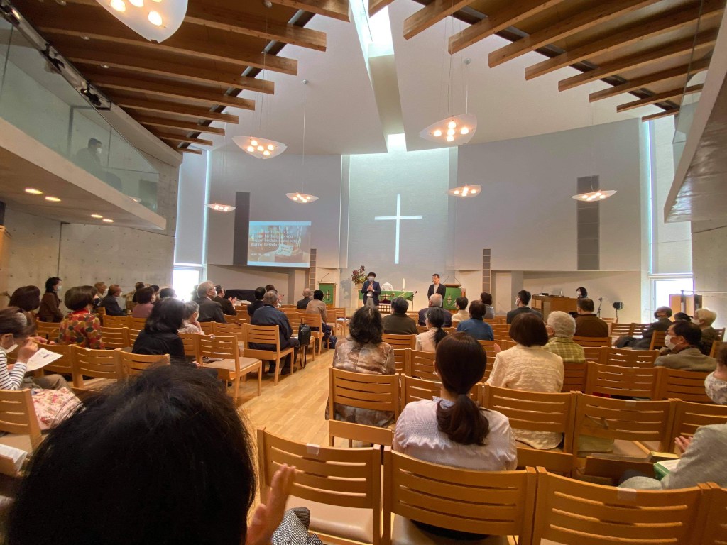Avslutningsvis i gudstjenesten ble det markert at 前川先生 (presten) har bursdag. Han blir 60 år. Vi sammen med mange andre i forsamlingen hadde på forhånd fått utlevert små lapper hvor vi kunne skrive våre personlige hilsener. Disse lappene ble limt inn i et stort og flott bursdagskort. Da tenåringssønnen til presten som inn med blomster til han, ble han helt ordløs. Det er sannelig godt å kunne gjøre stas på hverandre i et fellesskap.