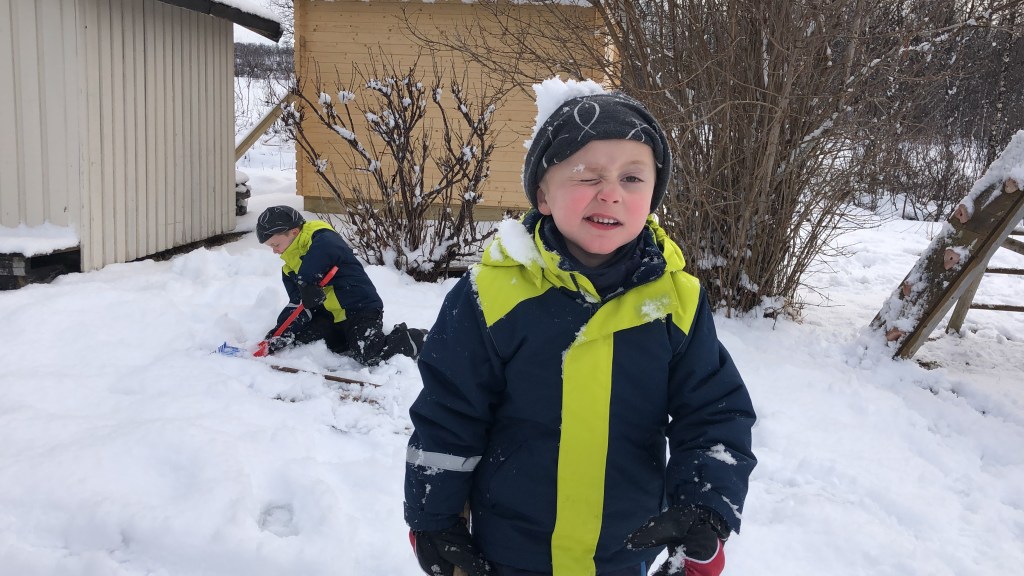 Og at det er snø her i Nord-Norge fremdeles, ble bare en god bonus for oss i karantenetiden. Vi har blitt velsignet med mye gøy lek utendørs i hagen disse karantenedagene.
