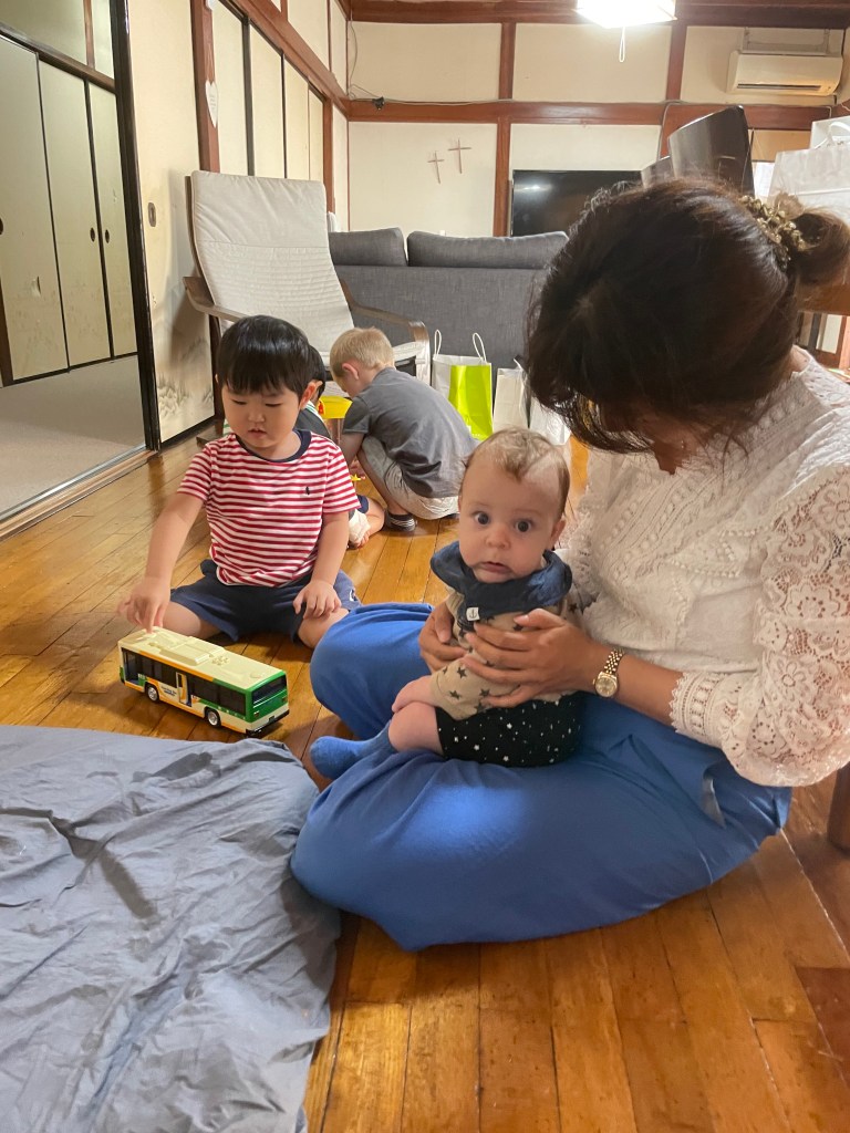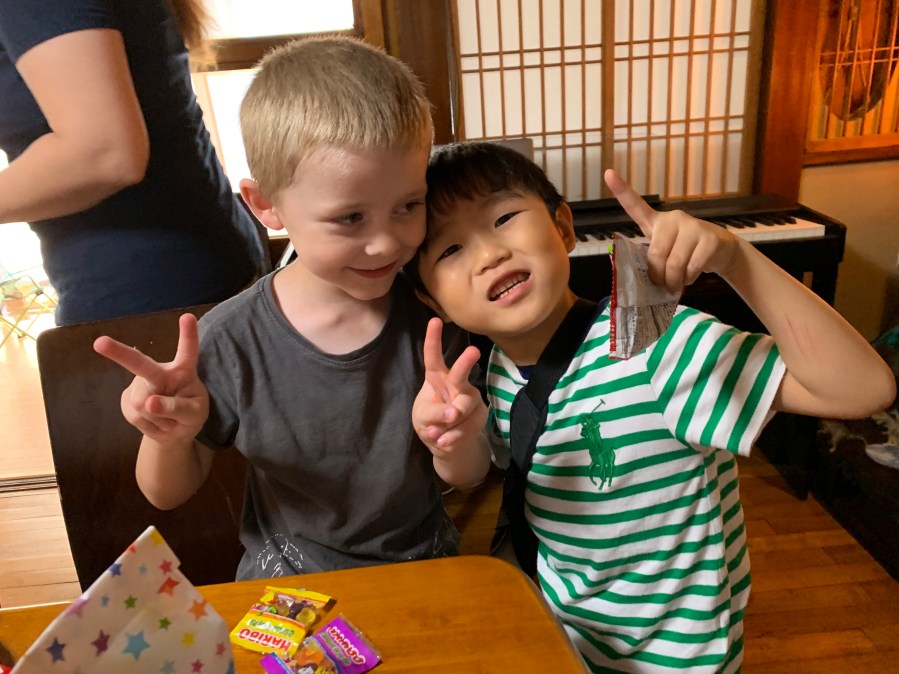 Endelig fikk vi invitert en klassekompis av Benjamin hjem på besøk til oss. Det er ikke gitt at alle foreldrene som sender barna sine til den internasjonale skolen sin barnehage kan engelsk selv. Mange ønsker å gi barna sine det engelske språket som de selv ikke kan, og med det spanderer de å sende barna sine til en internasjonal skole. Vi er heldig som er en familie som også kan snakke japansk slik at vi kan invitere alle slag folk på besøk. Virkelig en koselig mor på besøk sammen med en gutt som er jevngammel med Benjamin og en lillebror. Kjekt å bli kjent med mennesker som bor i andre bydeler i Kobe. I denne byen finnes det virkelig bydeler med hus i alle prisklasser.