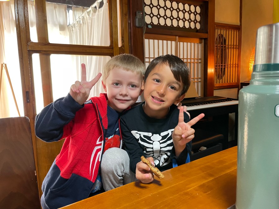 Denne gang er det Benjamin som har besøk av en barnehagekompis som han vil komme til å gå i 1.klasse sammen med til neste år. Og Tone fikk gleden av å bli kjent med en hyggelig mamma. Flotte folk!
