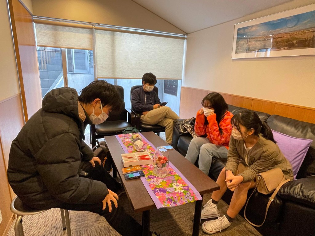 Samtidig med søndagsskolen har ungdommene samlet seg til ungdomsgudstjeneste. Den japanske kulturen åpner så fint opp for å ikke bare sitte passivt å lytte på noen som snakker om Jesus, men det er alltid gruppe etterpå hvor man kan spørre og samtale videre om dem man just har hørt om.
