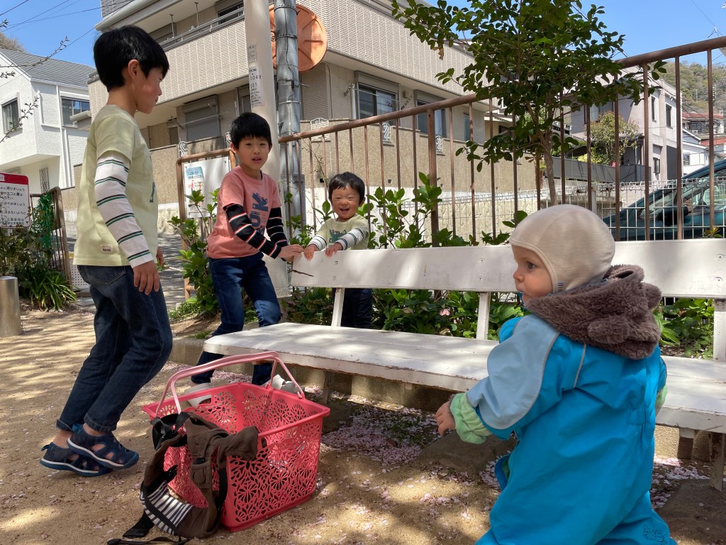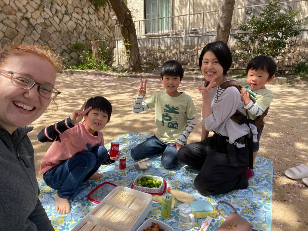 Det japanske skoleåret går fra vårferie til vårferie. Og nå er vårferien her og med det er tiden for piknik kommet. Våres gutter som går på en internasjonale skole, har som i Norge skoleåret fra sommerferie til sommerferie. Det vil si at den internasjonale skolen ikke har like lang vårfeire som de japanske skolene. Dette gjorde at mens Alf Ivar og Benjamin var på skolen, fikk Tone og Caspian dra på piknik sammen med ei venninne i nabolaget og alle hennes tre barn. Veldig koselig.