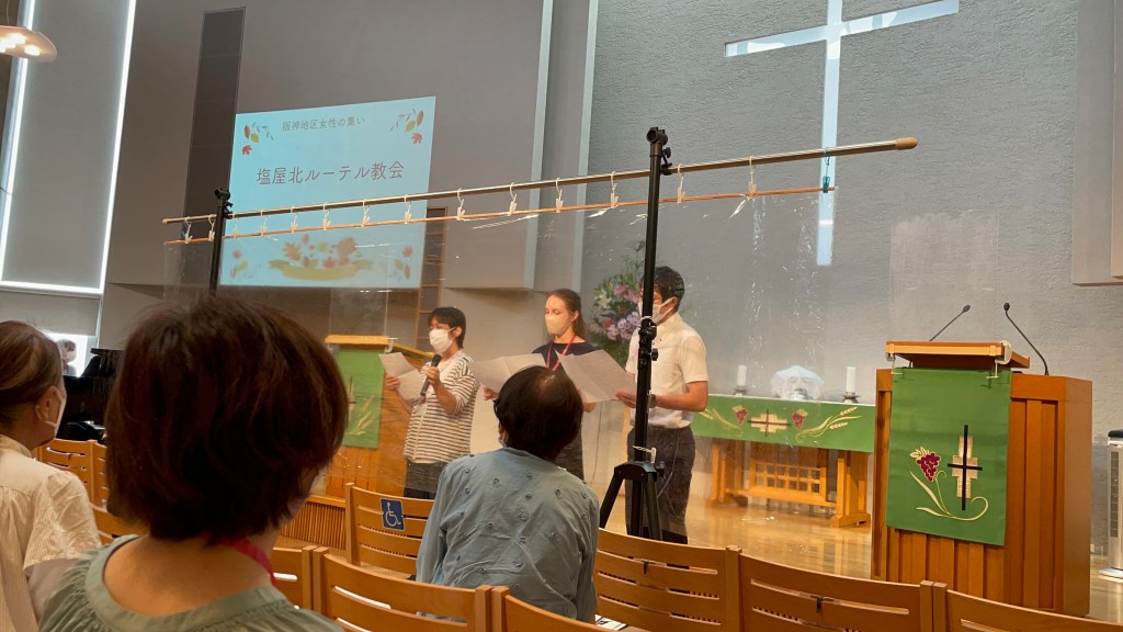 I området vi bor i er det flere av det vi kan kalle kvinnegrupper og kvinneforeninger i de ulike WJELC-kirkene. Disse samlet seg til en storsamlinga i Aotani Kirke. Dere kan tro det var fest! På grunn av Covid var det hele tre år siden de hadde vært samlet slik til en storsamlinga. WJELC-kirke er navnet på den japanske kirka vår misjonsorganisasjon samarbeider med.