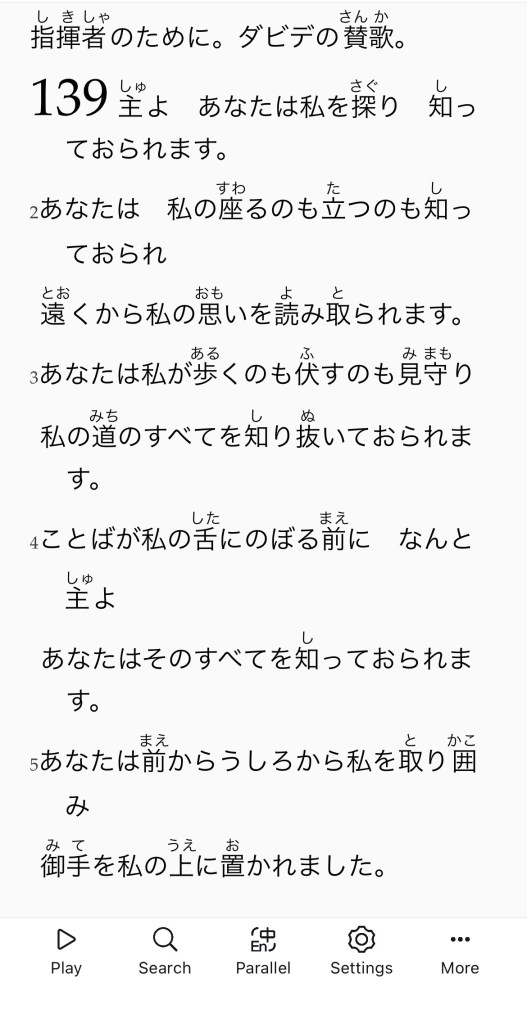 Det siste Shihoko og gjengen sin har nå arbeidet en langt stund med er å utarbeide en vel fungerende Bibel-app der Bibelens tekst er tilgjengelig på godt leselig språk, og som også har lydbokfunksjon der man kan trykke på fra hvilket bibelvers du ønsker skal leses høyt mens du leser Bibelen i appen. De har utarbeidet en oversikt over hvordan man kan lytte deg igjennom hele Bibelen samme med kirka ved hjelp av denne appen. Den brukte oppleste lydbok har eksistert fra før, bibelteksten som er anvendt har eksistert fra før – men denne gruppen har altså plassert disse to tingene sammen i en app med fokus på god brukervennlighet. Shihoko fortalte om denne appen til Aotani kirke sist hun var innom Kobe for å besøke sine foreldre.