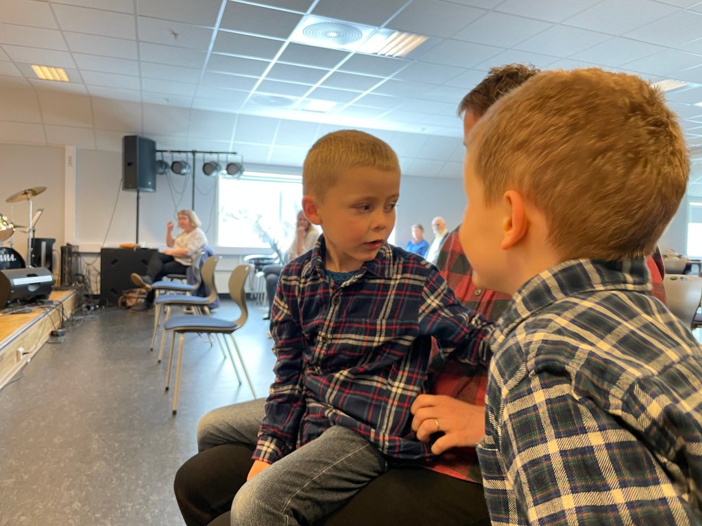 Noe vi også velger å takke Gud for, er Alf Ivar og Benjamin sin store tålmodighet på søndagene. Her sitter de på sin andre gudstjeneste denne søndagen, og som dere ser – rolig og fortrolig med at deres innsats er gull verdt. Ja, dette er en gave til oss som familie.