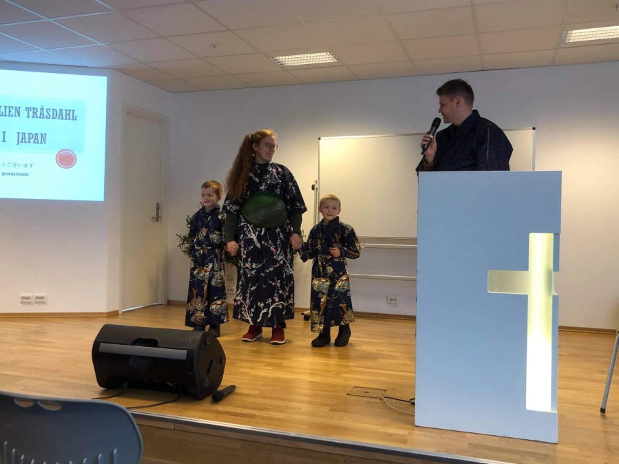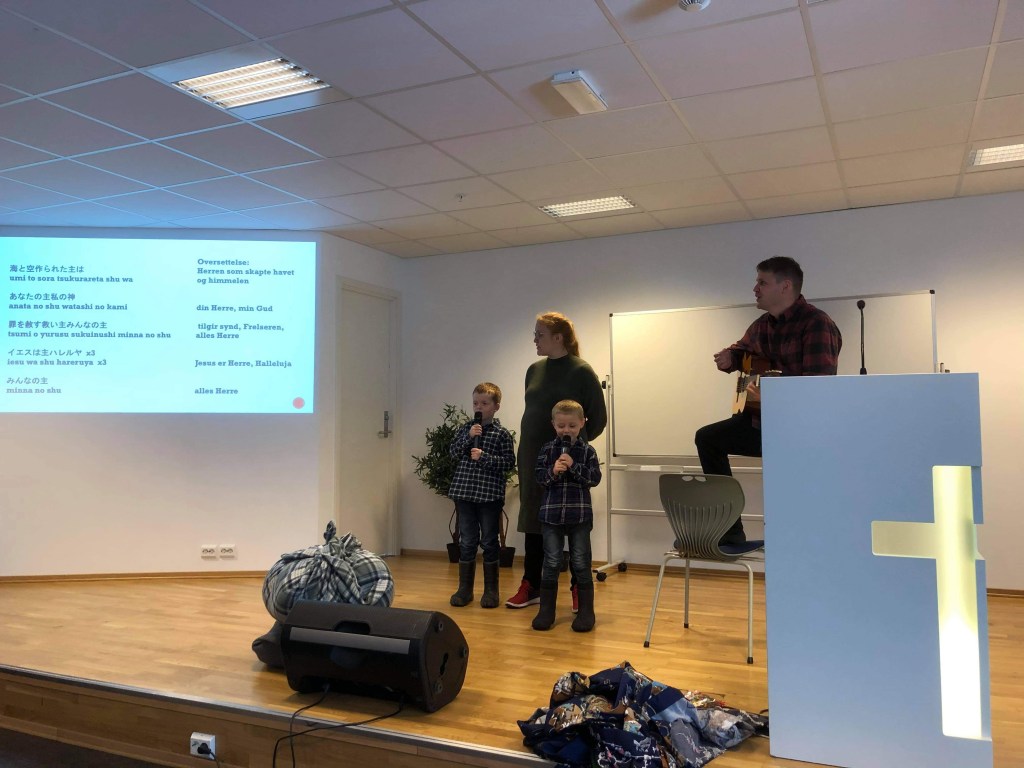 Vi ble intervjuet av møtelederen, og vi sang en barnesang på japansk som familie. Begge deler gledet oss som familie. På intervjuet kunne vi voksne få delt litt om det vi står i. Med sangen kunne barna få lov til å kjenne på at også de bidro med noe for andre.