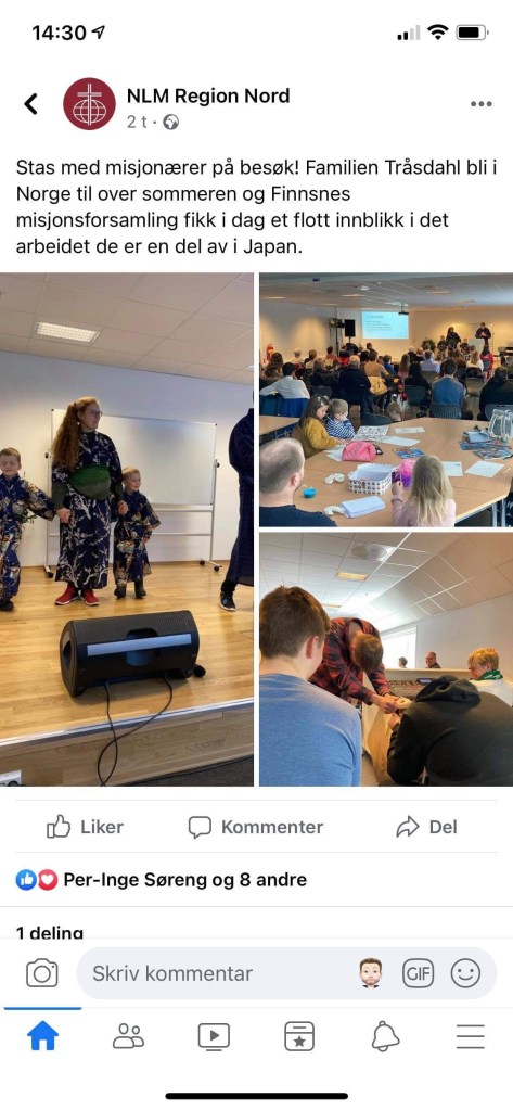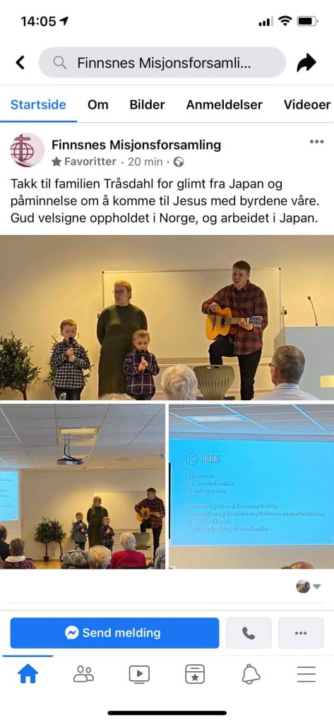 Veldig flott for oss å være vitne til så mye omsorg og misjonsengasjement samlet i Finnsnes Misjonsforsamling (Fimis) i dag. I dag fikk vi nemlig lov til å forkynne om Jesus kombinert med å fortelle om Japan på søndagsmøtet med både barn og voksne tilstede i Fimis. Det gjør godt for oss å kjenne på hvordan kristne i Norge er veldig viktige for det vi står i når vi er i Japan. Slikt gjør Gud stor for oss.