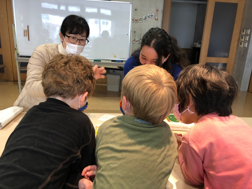 I år sammenfalt nemlig påska med den japanske vårferien som markerer skolens nye kalenderår – og med meldte regnbyger hele dagen, var det mange barn som hadde anledning til å komme til kirka. Ryktet hadde også spredt seg om at det skulle være ekstra gøye aktiviteter etter søndagsskolen denne søndagen.