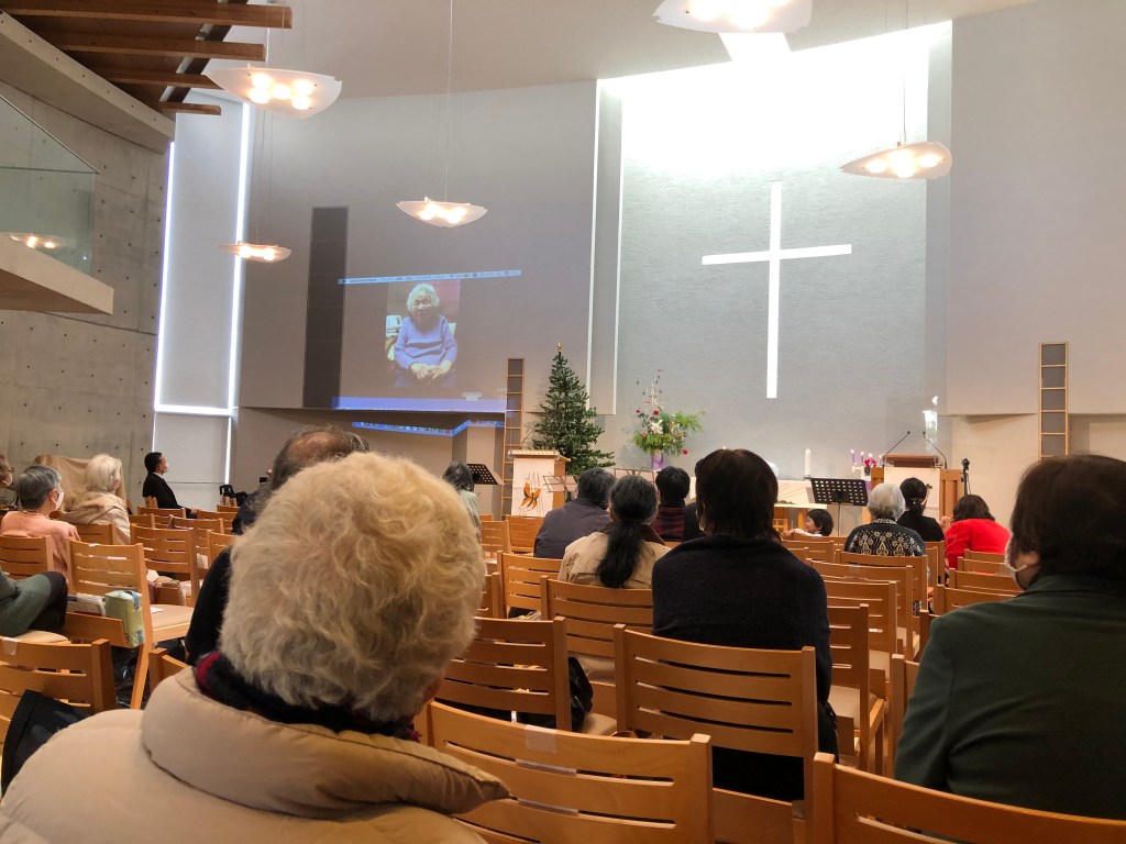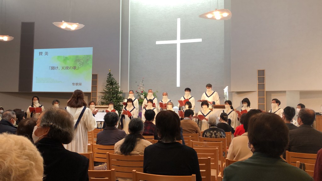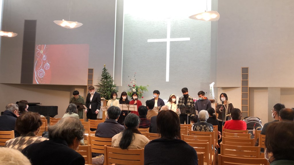 Den største julefeiringen gjorde vi sammen med våre søsken i Aotani kirke 4. søndag i advent. Dette er den dagen kristne i Japan feirer jula, og det gjøres hovedsakelig i kirka sammen med de andre kristne. Det ble avholdt en flott festgudstjeneste den søndagen. Det er langt færre i kirka nå enn det bruker å være, men en del følger også med på gudstjenesten i kirka på YouTube hjemmefra. Det er fint hvordan mennesker prøver å ta hensyn til det fremdeles stadig økende smitteomfanget av koronaviruset. Til vanlig inneholder denne julefeiringen i kirka også et langt ettermøte etter gudstjenesten der man spiser, underholdes og sosialiseres. I år var det bare gudstjenesten. Og folk ble bedt om å gå rett hjem etter gudstjenesten også denne søndagen. Ole Bjarne bidro på festgudstjenesten i det årlige juleprosjektkoret og var også med på musikkinnslaget til ungdommene i kirka. På morgenen var det også søndagsskole denne søndagen. Det er gøy å leke med barna fra nabolaget som jevnlig stikker innom søndagsskolen, og da særlig gøy når ungdommene i kirka hiver seg med i leken: