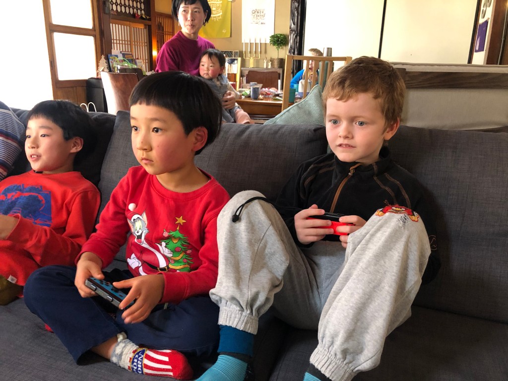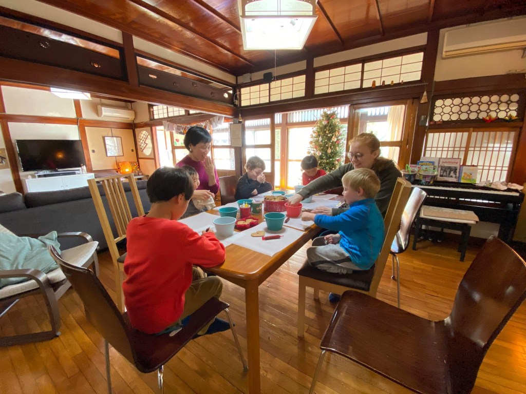De fleste japanere er svært opptatt ved nyttår og de påfølgende nyttårsdagene. Da samler de storfamilien, spiser mat og går til templene for å be. Derfor var det ekstra kjekt at vi klarte å invitere en av Alf Ivar sine kompiser fra klassen på besøk den 25. desember. Det var virkelig koselig å pynte pepperkaker sammen med dem, og ellers snakke og leke sammen.