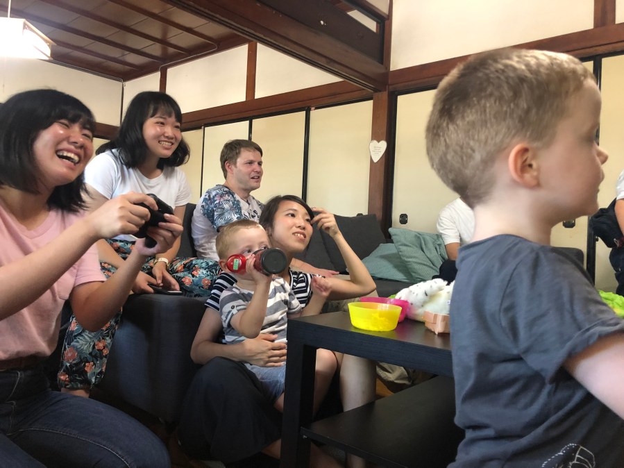 Guttene våres er også i en flott prosess i sin språkopplæring. Alf Ivar og Benjamin leker stort sett bare på japansk med hverandre uansett hvor de er. Vi opplever at de forstår svært mye av det som blir sagt til dem på japansk. Vi kan stadig oppleve at de kan forstå ord som ikke vi forstår. En festlig episode er at vår eldste gutt, Alf Ivar, kom hjem og fortalte om en pinne som barnehagelæreren hadde holdt opp i lufta i barnehagen. Pinnen hadde ulik farge på endene sine, og den ble brukt for å kommunisere når barna skulle løpe og når barna skulle stoppe opp. Alf Ivar fortale at når læreren holdt opp det røde endestykket på pinnen måtte de stoppe å løpe, også fortalte han videre at når læreren holdt oppe det endestykket som hadde «den andre blå» så måtte de løpe. Vi voksne undret oss litt over hvorfor det var «en annen blå», hva betydde det?! Alf Ivar forklarte til oss på nytt at det var blå, men det var liksom den andre blå – den blå som liksom ikke var helt blå. Noen dager senere så vi denne pinnen til barnehagelæreren. Fargene på endestykkene var rød og grønn. Når vi så dette ble vi imponert over Alf Ivar! Japanere sier nemlig at trafikklysenes farge er rød og blå. Jeg kan fortelle dere at trafikklysene i Japan er helt like dem vi har i Norge, fargene i trafikklysene er røde og grønne. Rød lys når du skal stoppe, og du får grønt lys når du kan kjøre. Men altså japanere kaller dette grønne trafikklyset for blått. Det er rart, men det er rett og slett bare sånn. Barnehagelæreren hadde da altså sagt at det grønne endestykket på denne pinnen var blått – noe vår Alf Ivar helt tydelig ikke var enig i, samtidig som han hadde en forståelse av at sin japanske barnehagelærer brukte ordet for blått om det grønne endestykket. For en flott måte Alf Ivar taklet dette på ved å forklare det grønne endestykket som «den andre blå». Alf Ivar er en gutt som helt tydelig har kontroll på navnene på fargene både på norsk og på japansk. Vi er imponerte og stolte over det både Benjamin og Alf Ivar er!